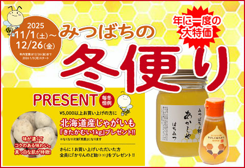 日頃の感謝の気持ちを込めて、5,000円以上お買い上げの方に北海道産じゃがいも「きたかむい1kg」をプレゼント!!