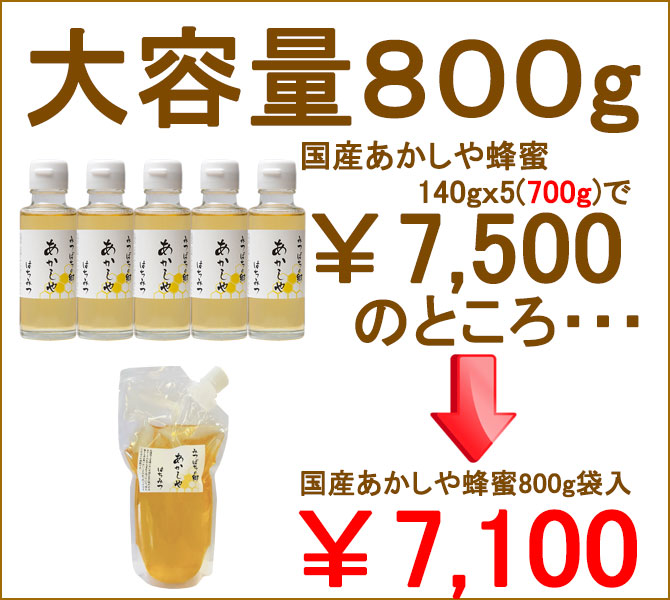 【お徳用】国産あかしや蜂蜜 800g袋入り